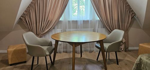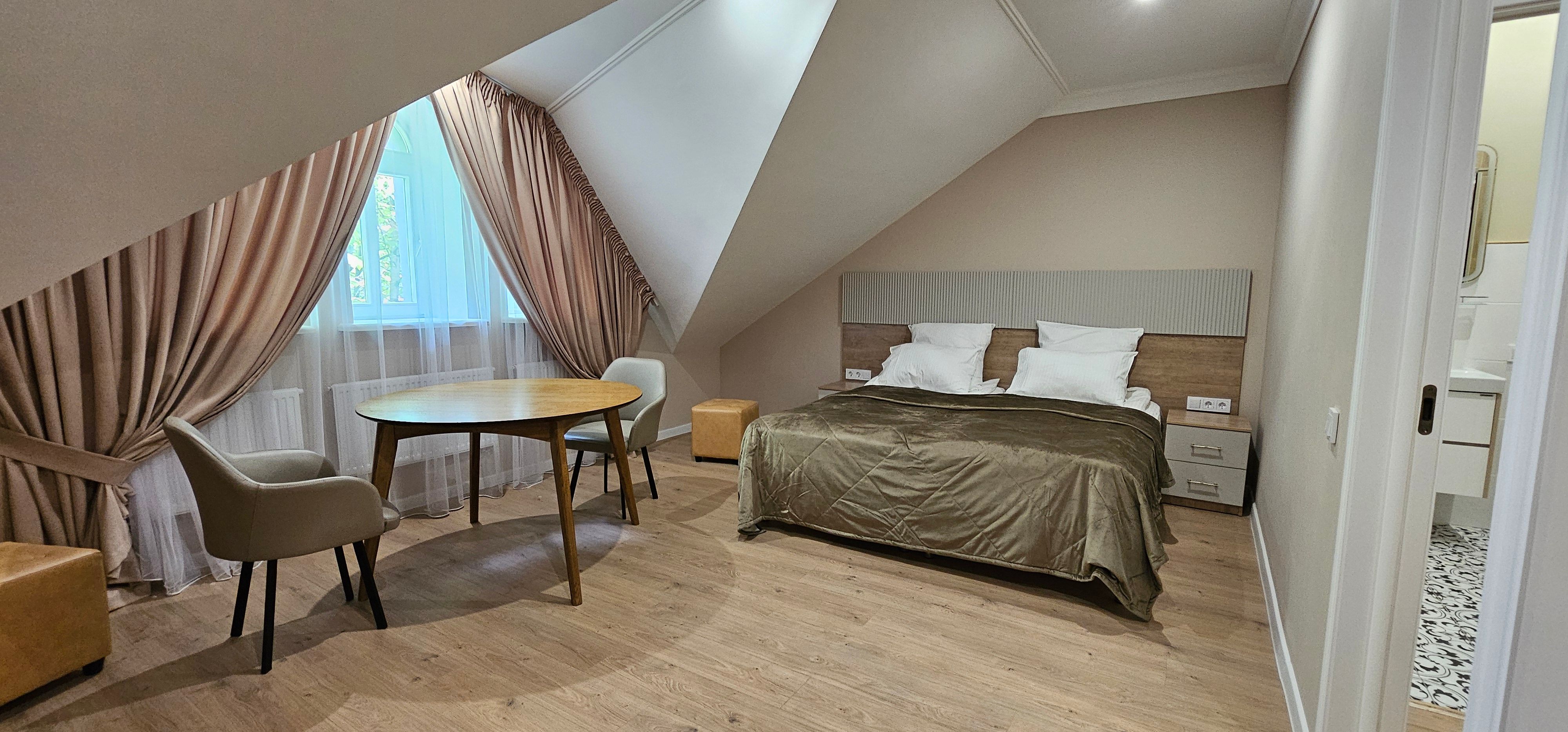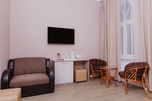 Номер идеально подойдёт тем, кто ценит пространство, комфорт и функциональность. Здесь легко проводить время как активно, так и в спокойной обстановке, наслаждаясь тишиной и спокойной атмосферой корпусов 1, 2 и 3 санатория «Орион».