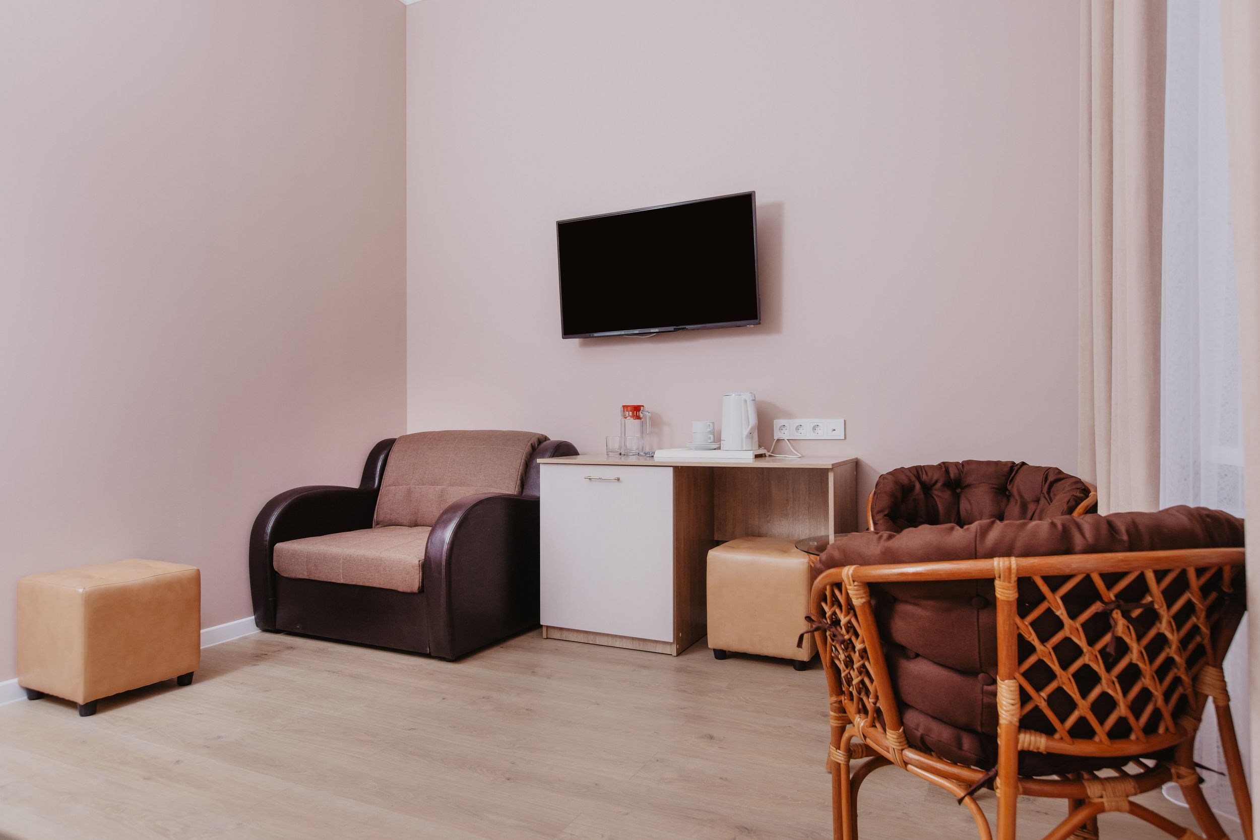 Просторный и уютный номер категории Джуниор Сюит площадью до 30 кв.м. создан для комфортного отдыха одного гостя или пары, а также подходит для размещения небольшой семьи. Светлое, гармоничное оформление и продуманная планировка делают пребывание приятным и удобным, создавая атмосферу расслабления и уюта.